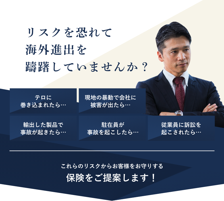 海外でビジネスを展開される企業の皆さまを取り巻く賠償リスクなどについて、